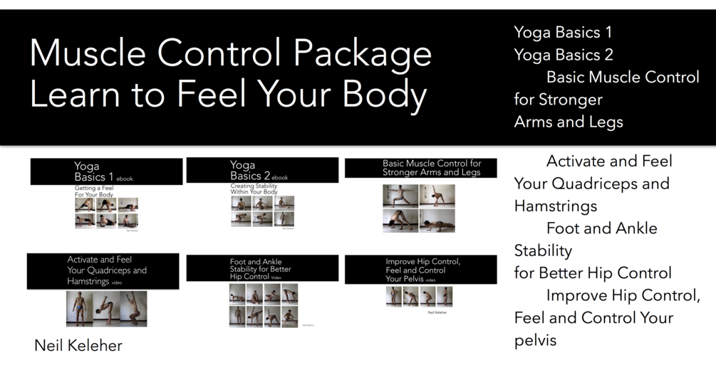 Yoga Basics 1 and 2 help you become more aware of how your parts of your body move, and in particular whether a part of your body is moving or still. This is important in muscle control because a big part of muscle control is deliberately moving parts of your body or deliberately keeping them still.